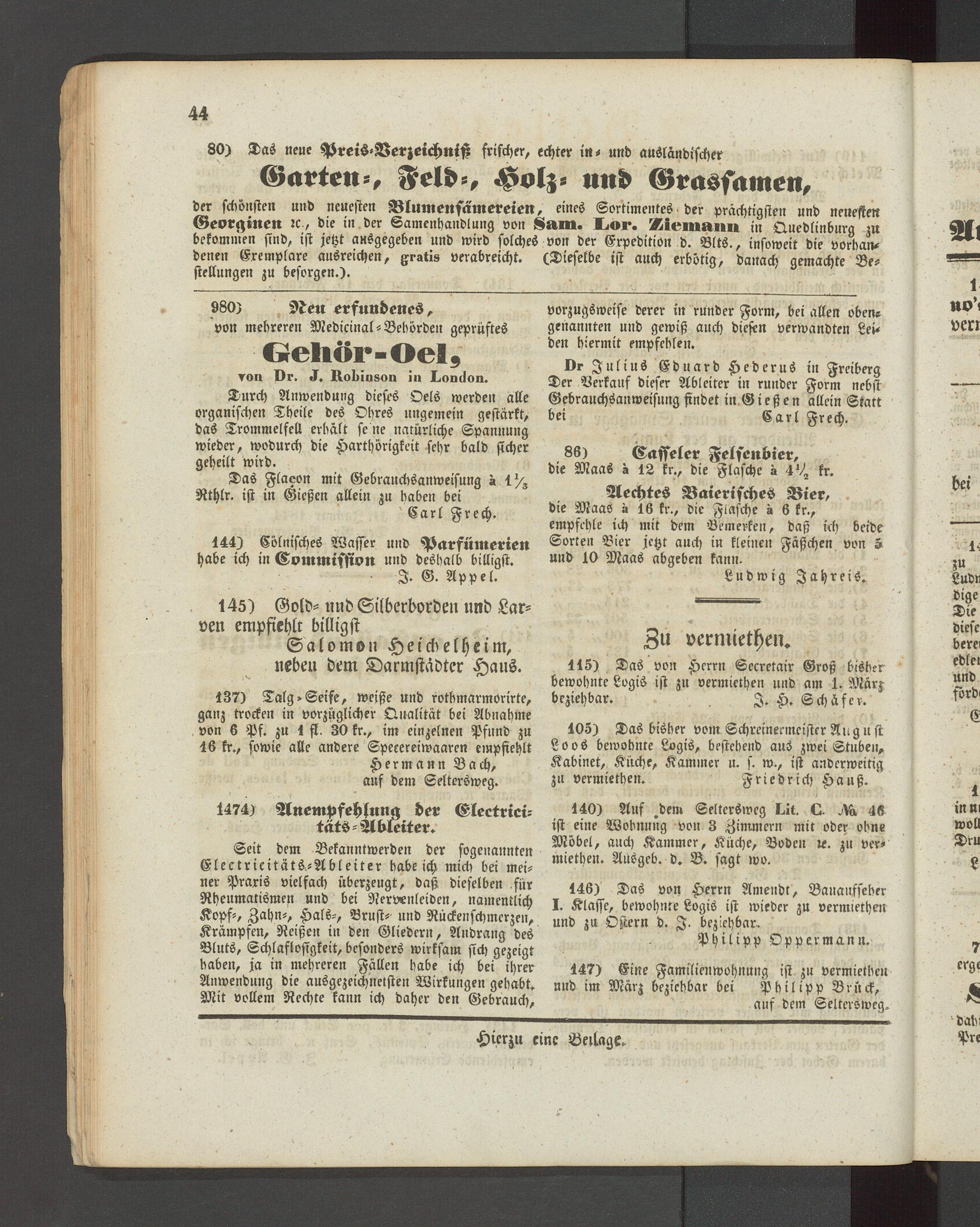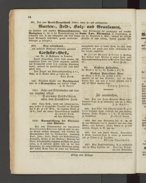 Anzeigeblatt für die Provinzialhauptstadt Gießen. 1840-1867
