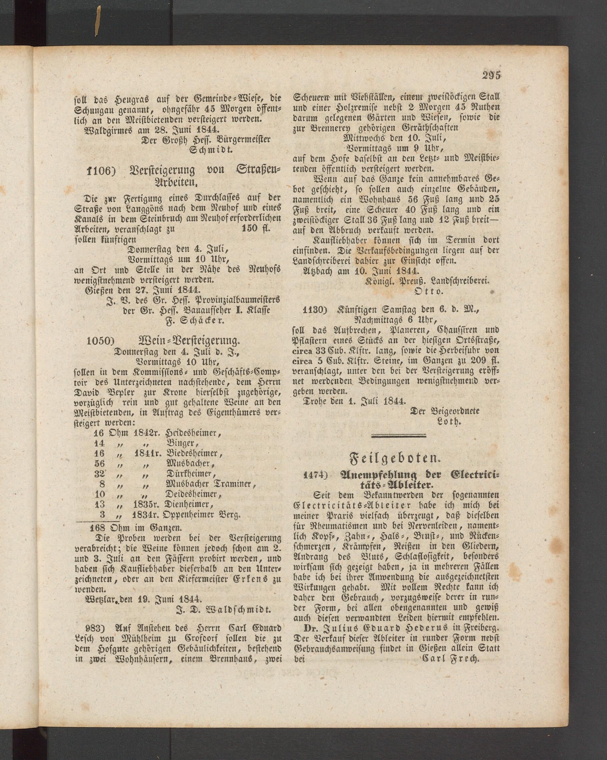 Anzeigeblatt für die Provinzialhauptstadt Gießen. 1840-1867