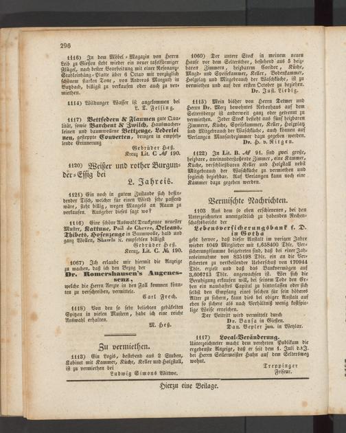 Anzeigeblatt für die Provinzialhauptstadt Gießen. 1840-1867