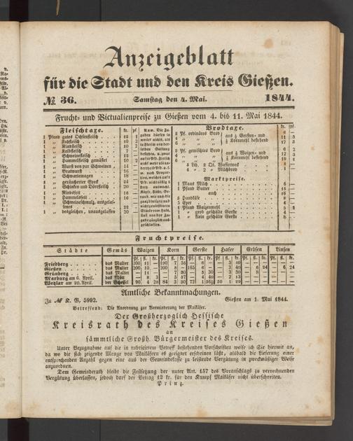 Anzeigeblatt für die Provinzialhauptstadt Gießen. 1840-1867