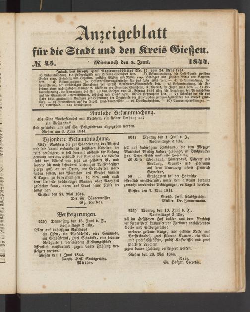 Anzeigeblatt für die Provinzialhauptstadt Gießen. 1840-1867