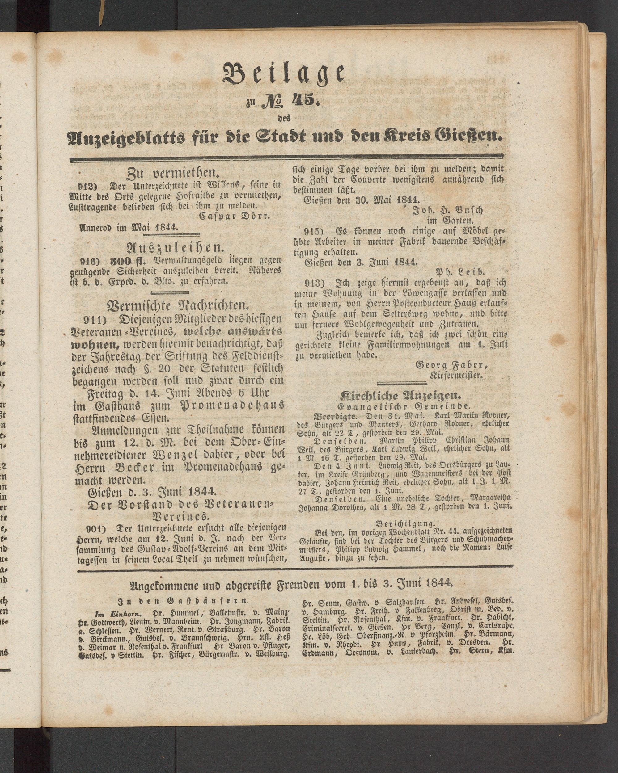 Anzeigeblatt für die Provinzialhauptstadt Gießen. 1840-1867