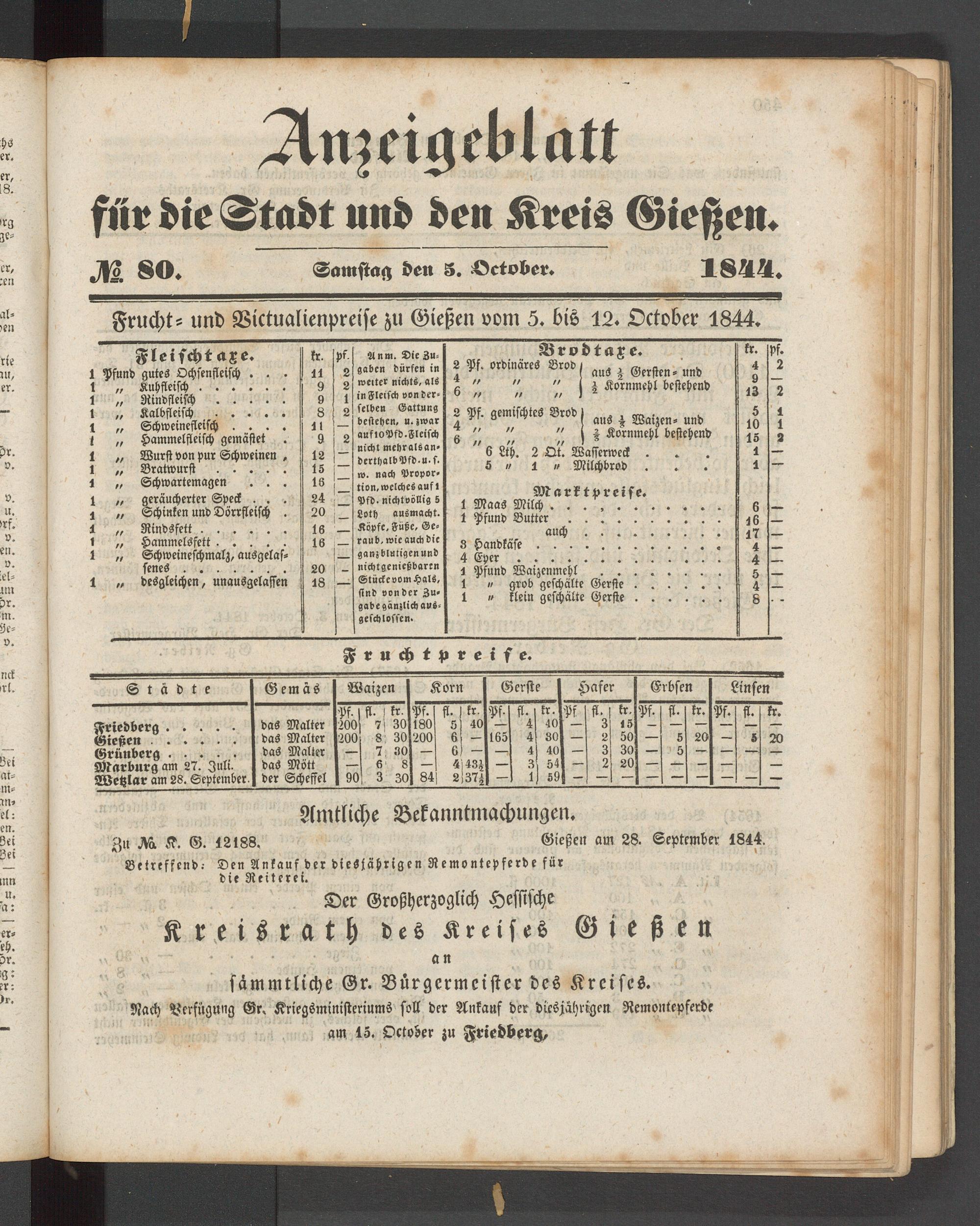 Anzeigeblatt für die Provinzialhauptstadt Gießen. 1840-1867