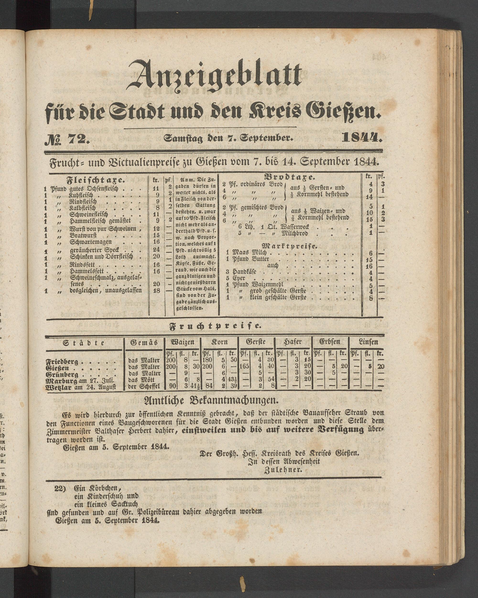 Anzeigeblatt für die Provinzialhauptstadt Gießen. 1840-1867