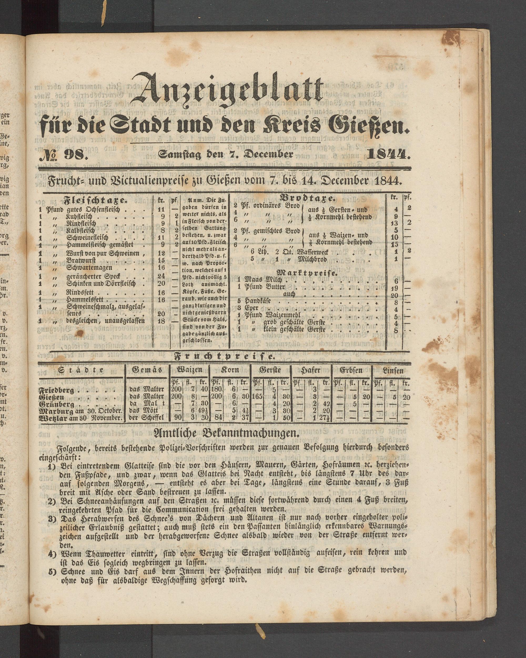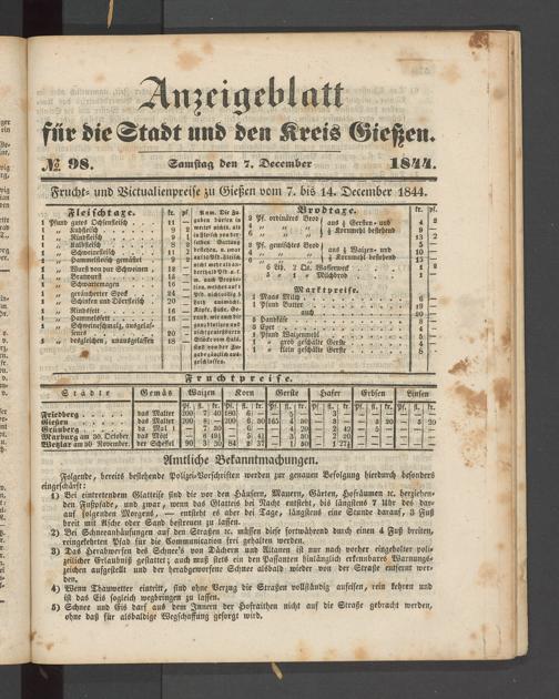 Anzeigeblatt für die Provinzialhauptstadt Gießen. 1840-1867