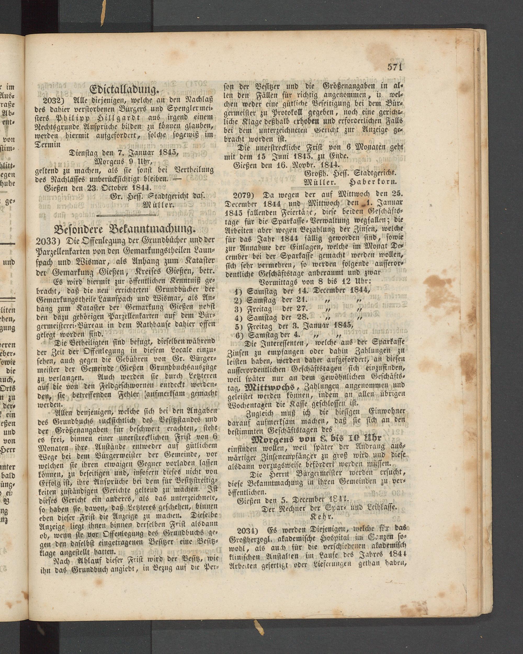 Anzeigeblatt für die Provinzialhauptstadt Gießen. 1840-1867