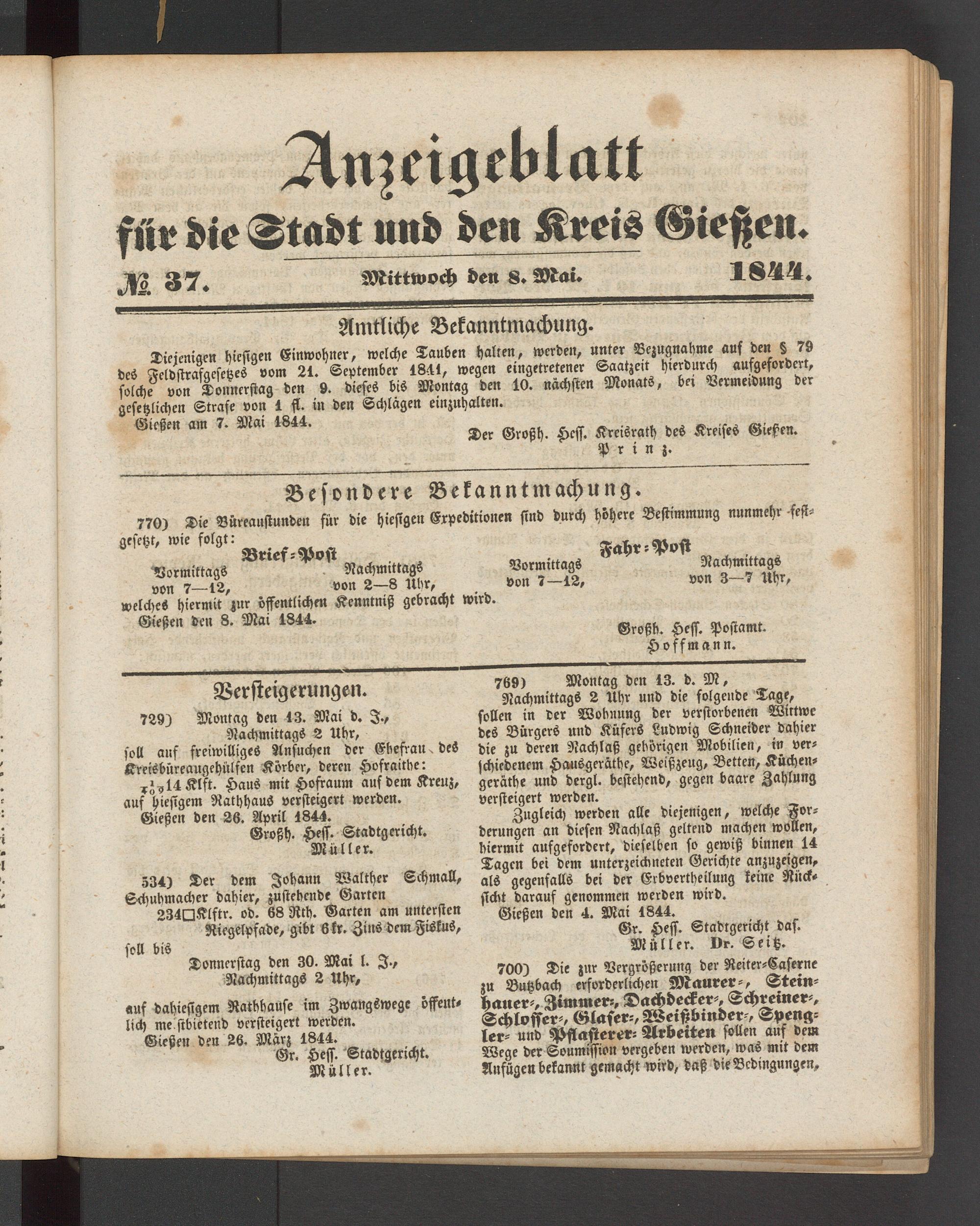 Anzeigeblatt für die Provinzialhauptstadt Gießen. 1840-1867