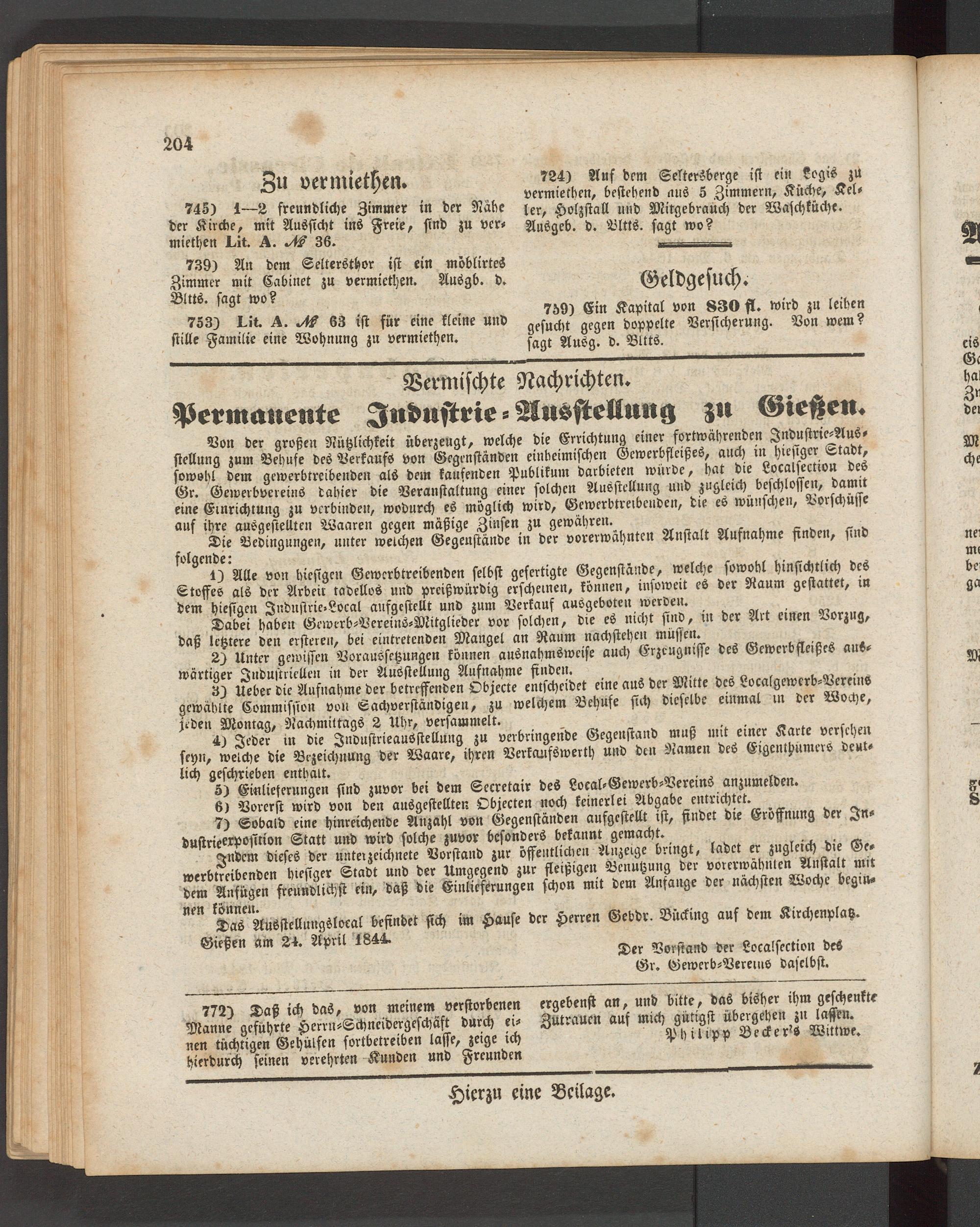 Anzeigeblatt für die Provinzialhauptstadt Gießen. 1840-1867