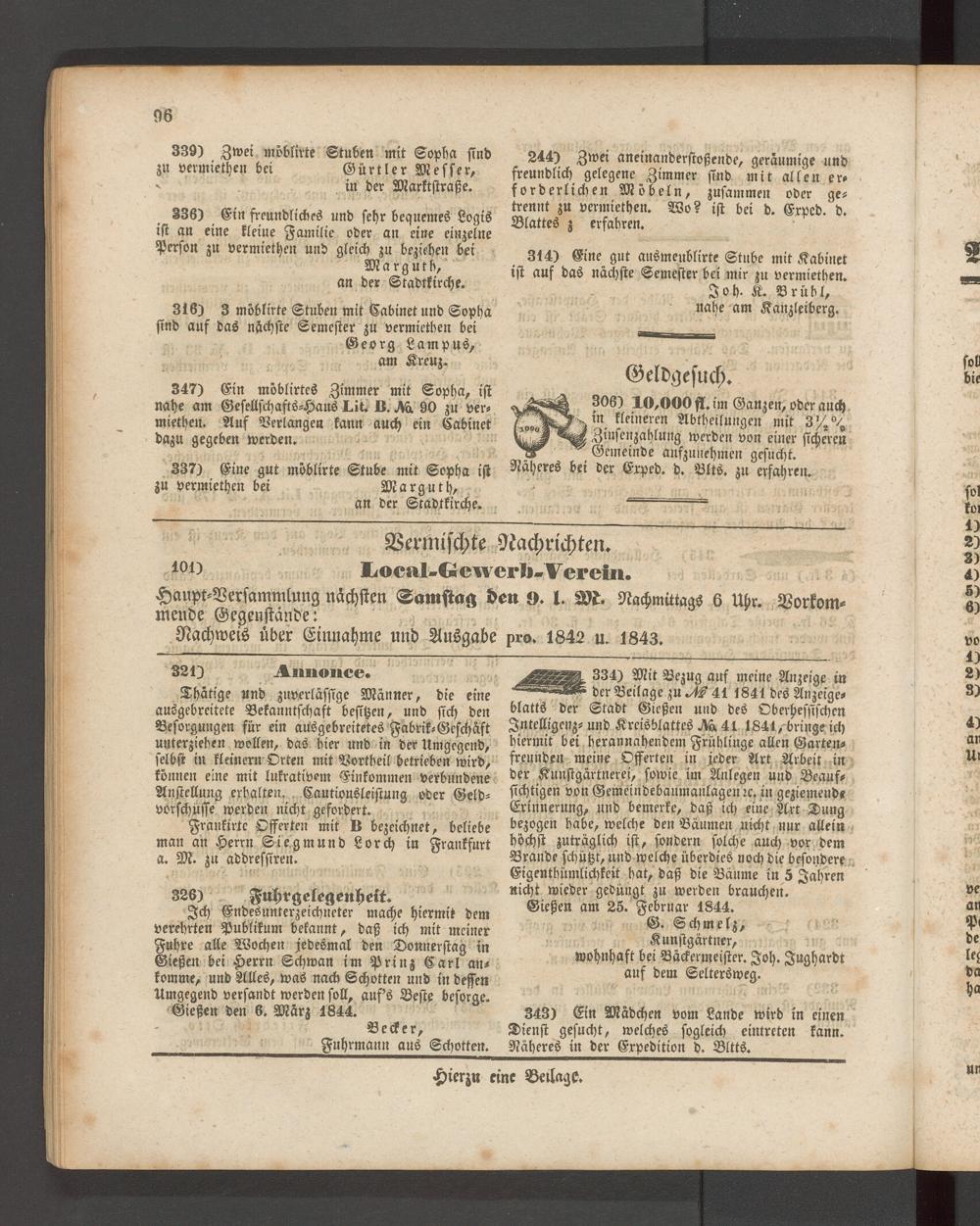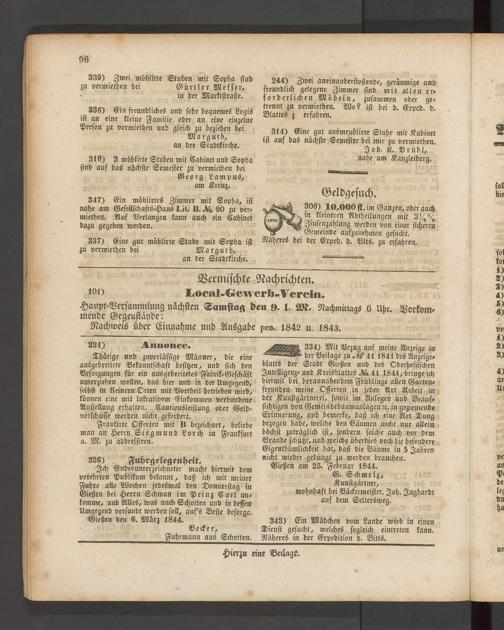 Anzeigeblatt für die Provinzialhauptstadt Gießen. 1840-1867