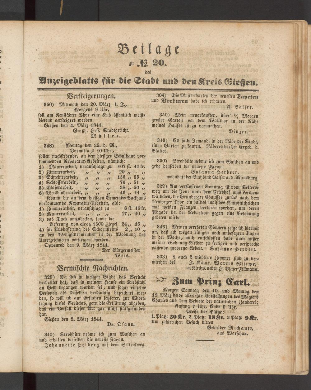 Anzeigeblatt für die Provinzialhauptstadt Gießen. 1840-1867