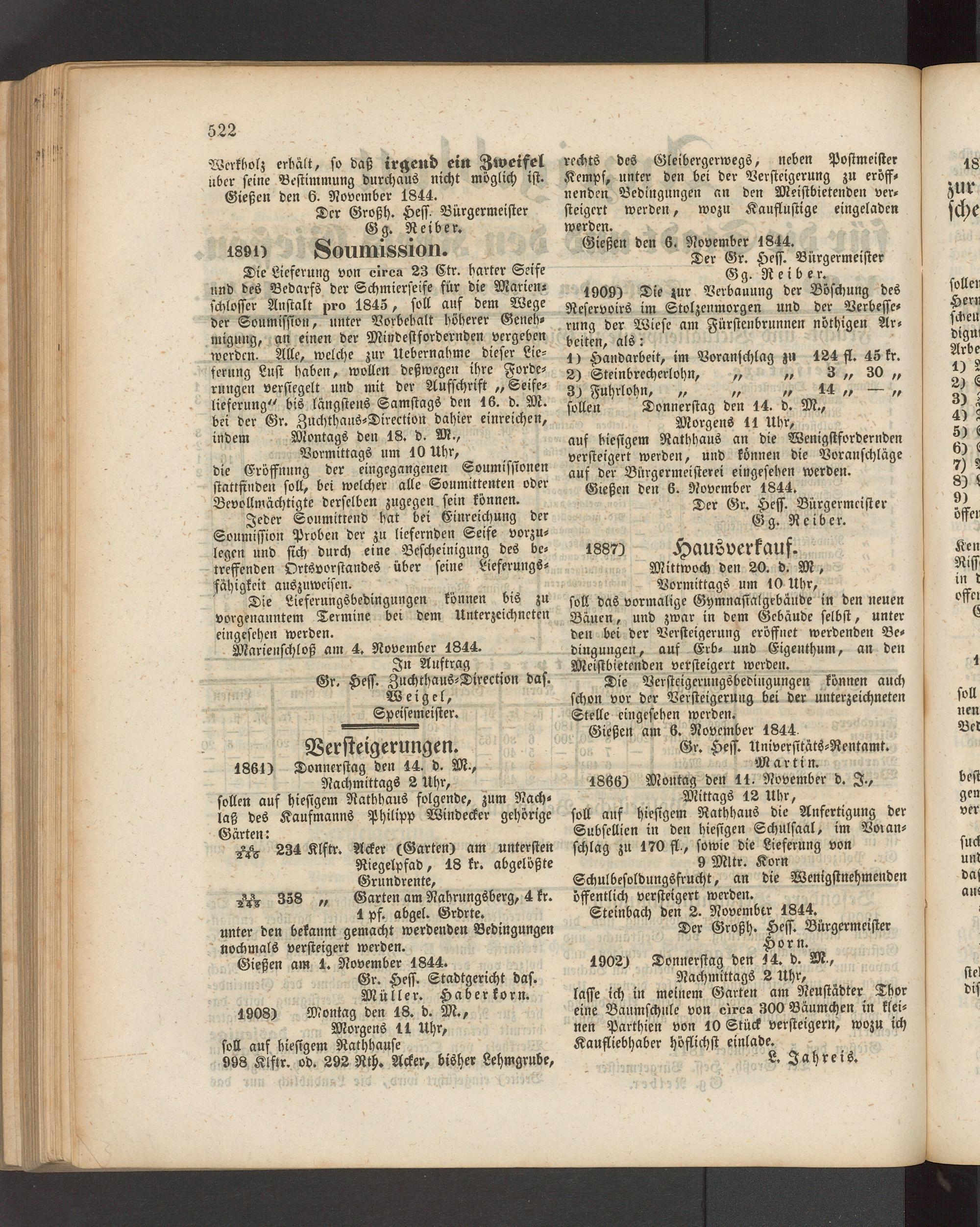 Anzeigeblatt für die Provinzialhauptstadt Gießen. 1840-1867