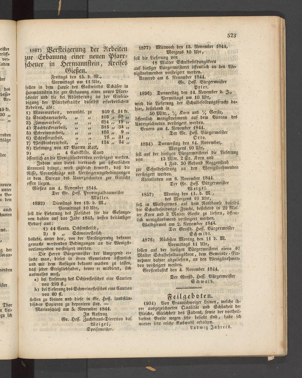 Anzeigeblatt für die Provinzialhauptstadt Gießen. 1840-1867