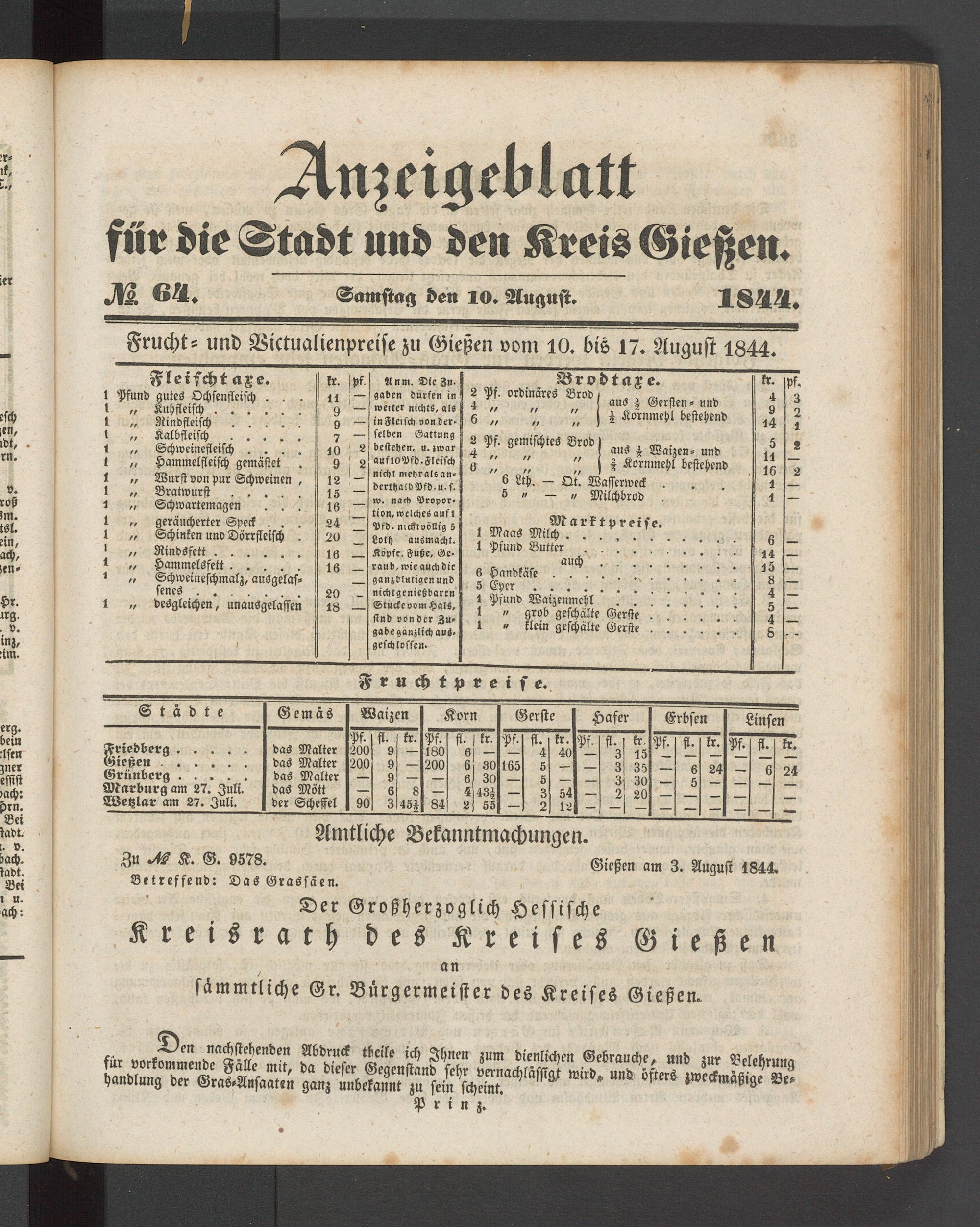 Anzeigeblatt für die Provinzialhauptstadt Gießen. 1840-1867