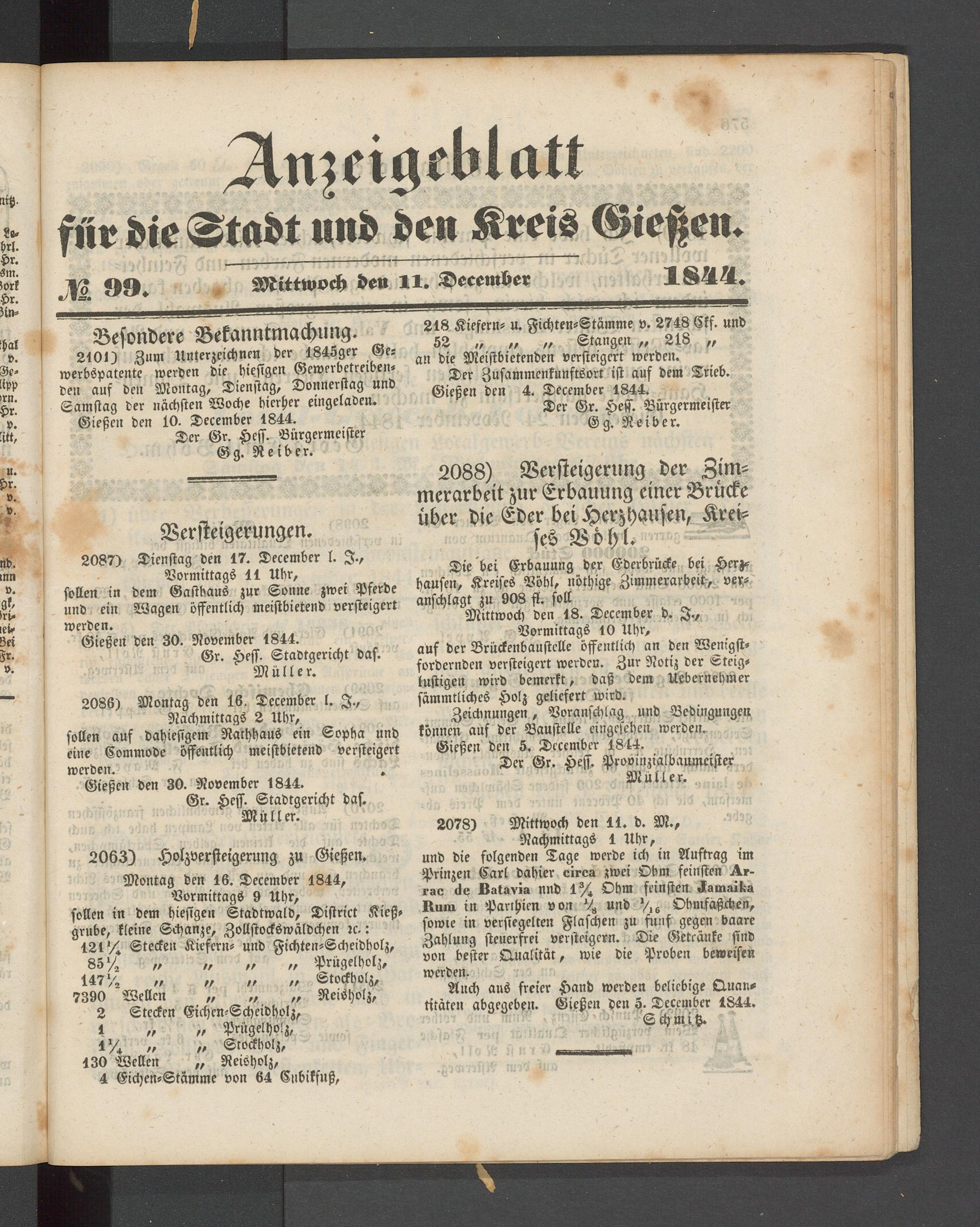 Anzeigeblatt für die Provinzialhauptstadt Gießen. 1840-1867