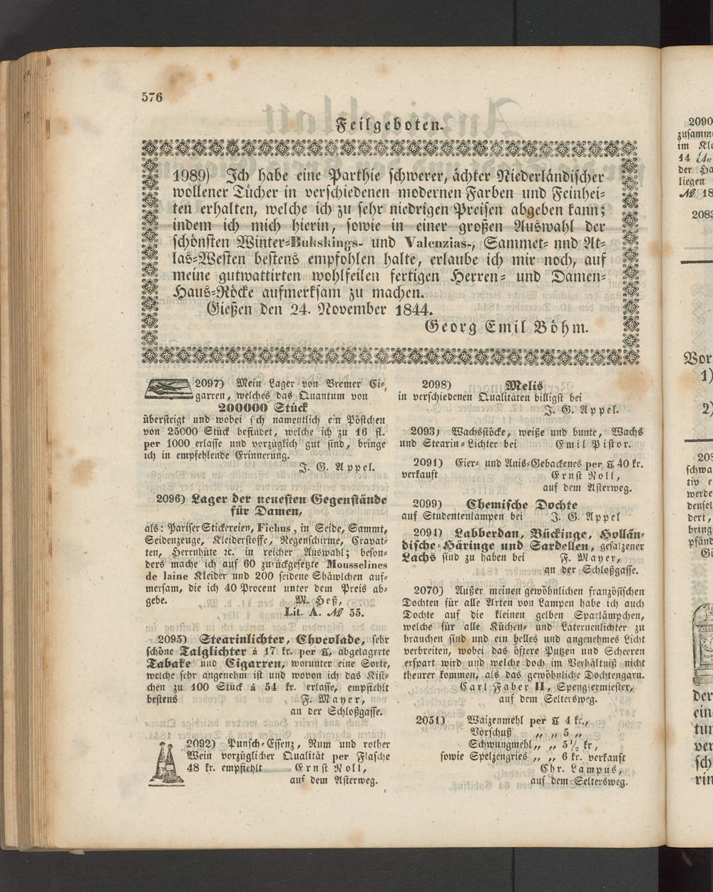 Anzeigeblatt für die Provinzialhauptstadt Gießen. 1840-1867