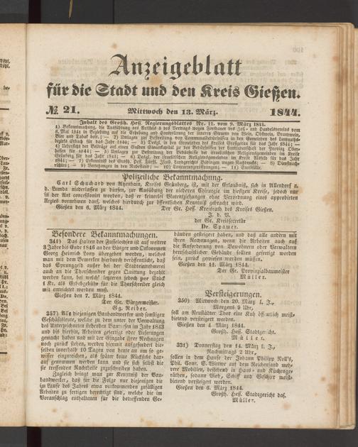 Anzeigeblatt für die Provinzialhauptstadt Gießen. 1840-1867