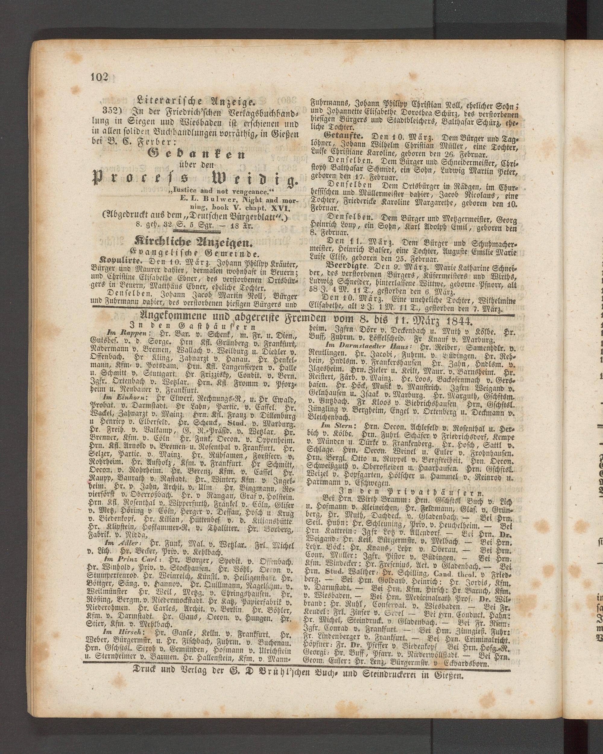 Anzeigeblatt für die Provinzialhauptstadt Gießen. 1840-1867