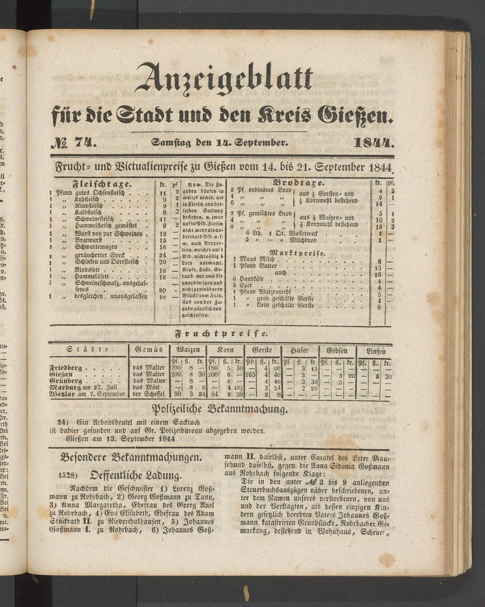 Anzeigeblatt für die Provinzialhauptstadt Gießen. 1840-1867