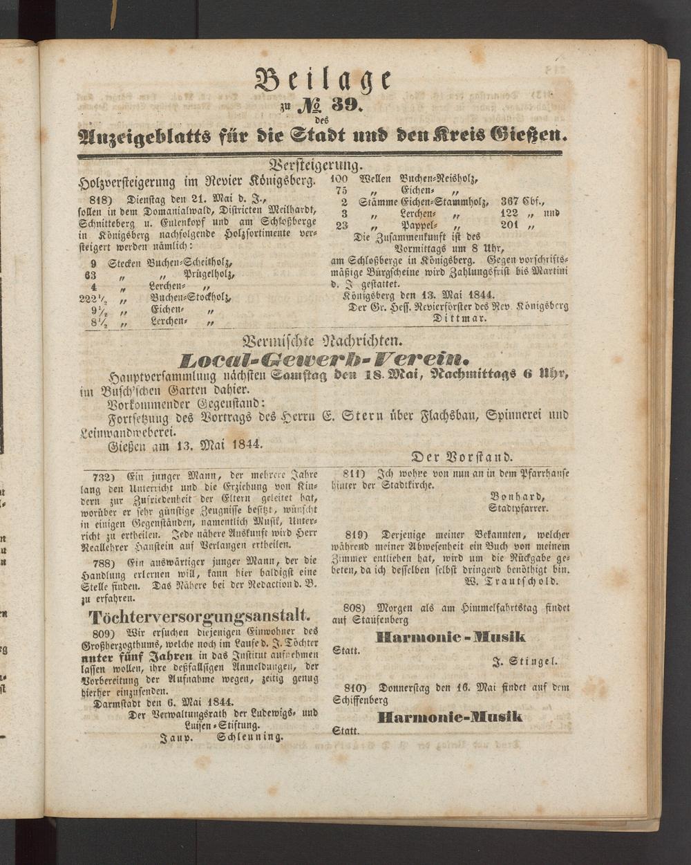 Anzeigeblatt für die Provinzialhauptstadt Gießen. 1840-1867