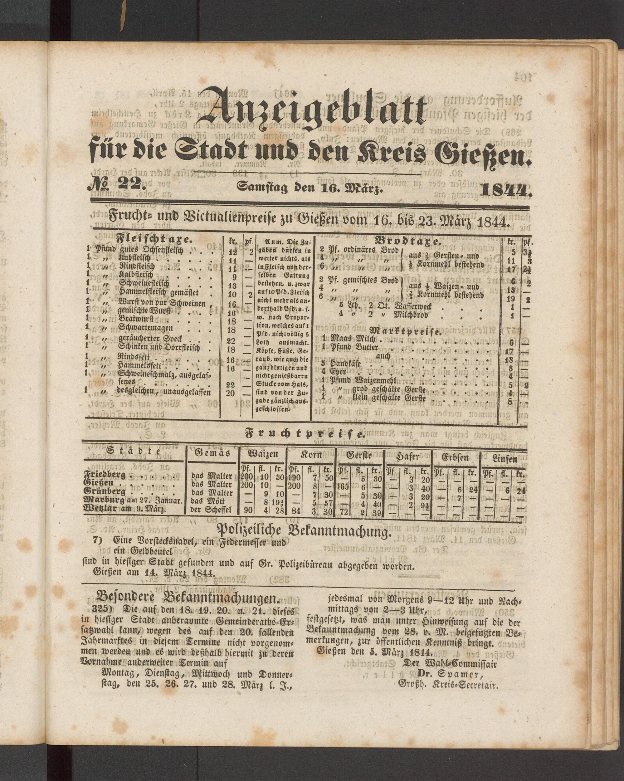 Anzeigeblatt für die Provinzialhauptstadt Gießen. 1840-1867