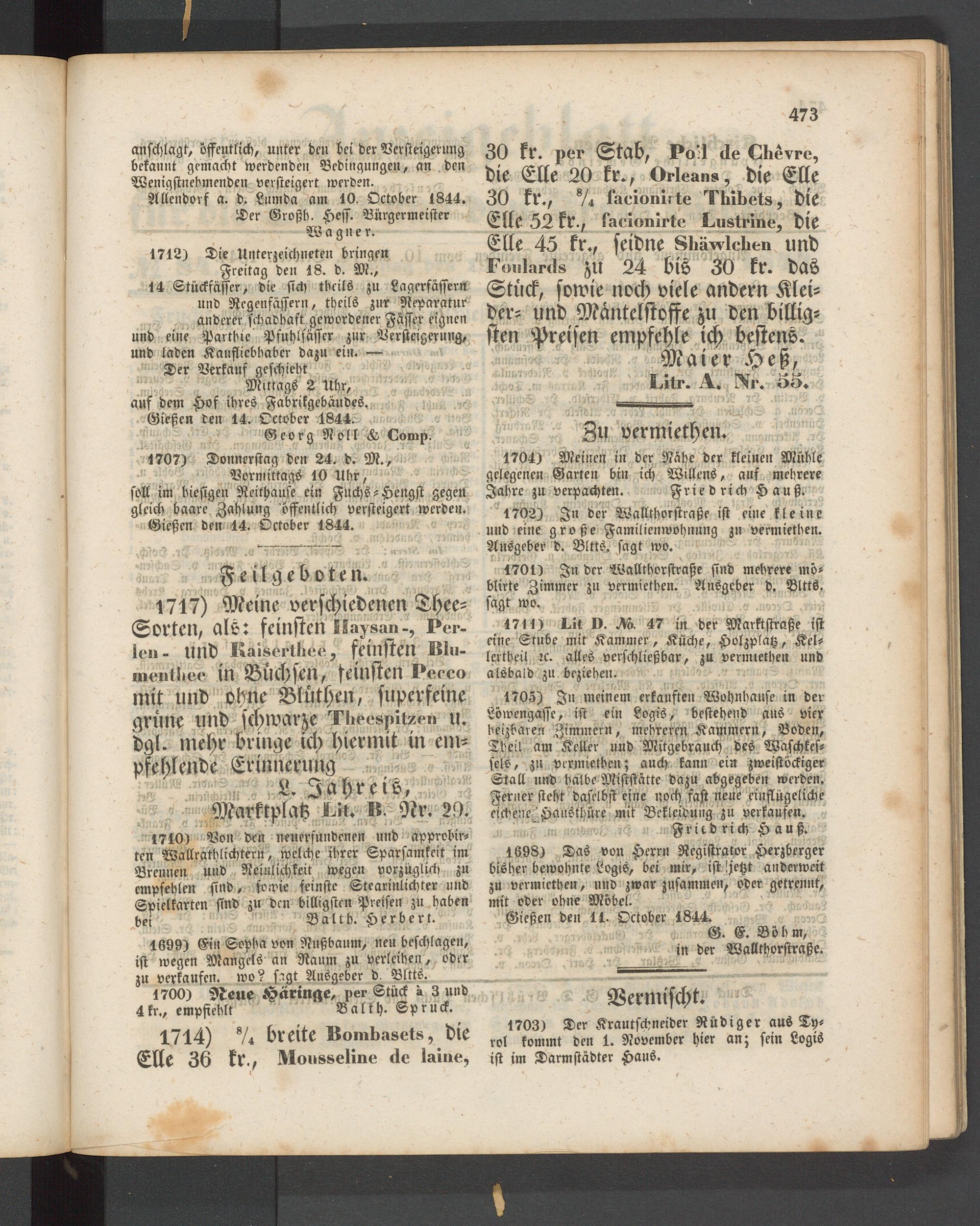 Anzeigeblatt für die Provinzialhauptstadt Gießen. 1840-1867