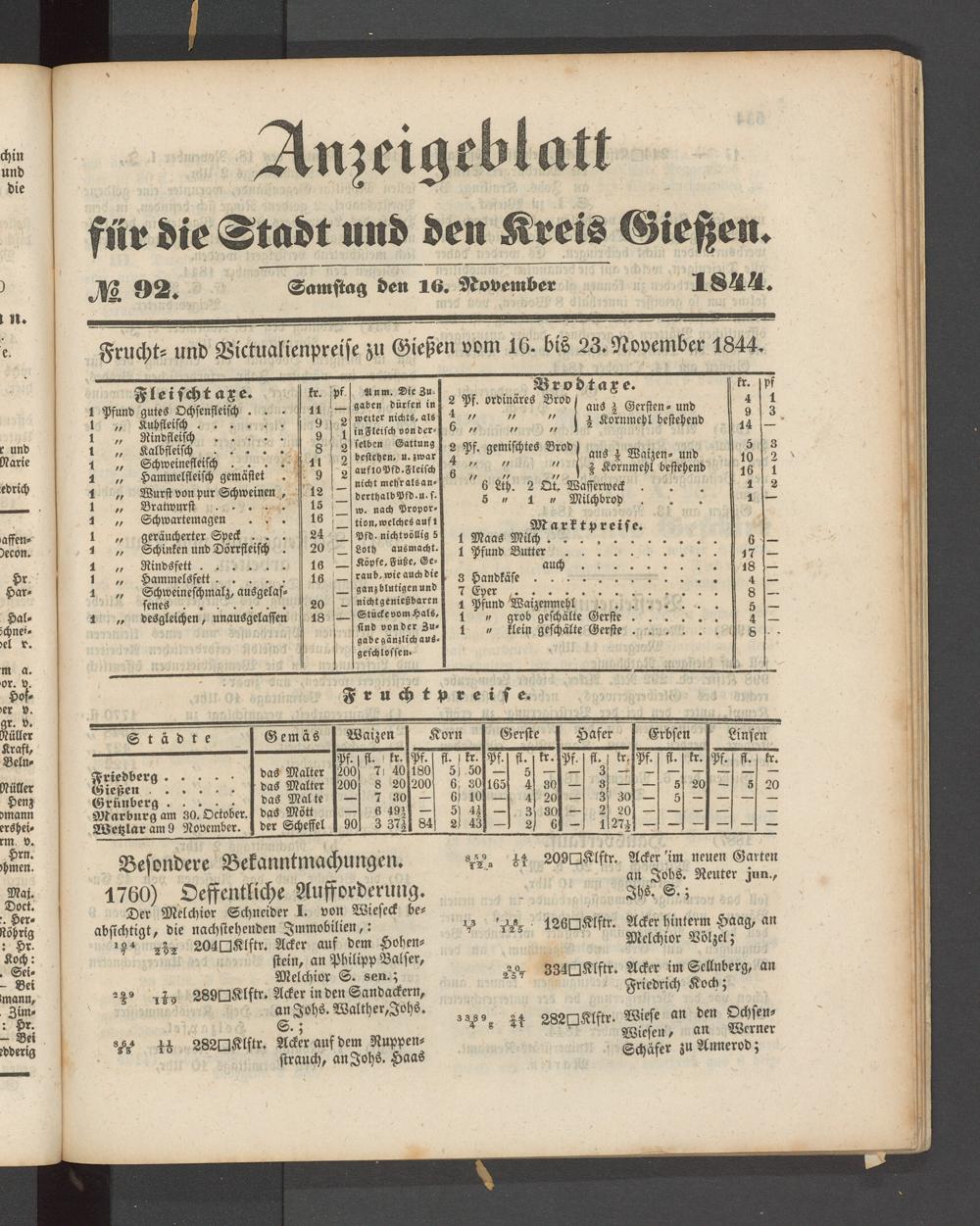 Anzeigeblatt für die Provinzialhauptstadt Gießen. 1840-1867