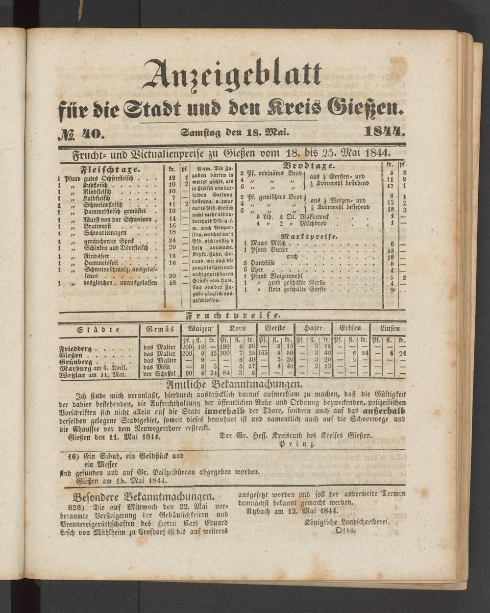 Anzeigeblatt für die Provinzialhauptstadt Gießen. 1840-1867