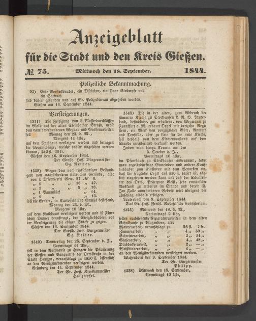 Anzeigeblatt für die Provinzialhauptstadt Gießen. 1840-1867