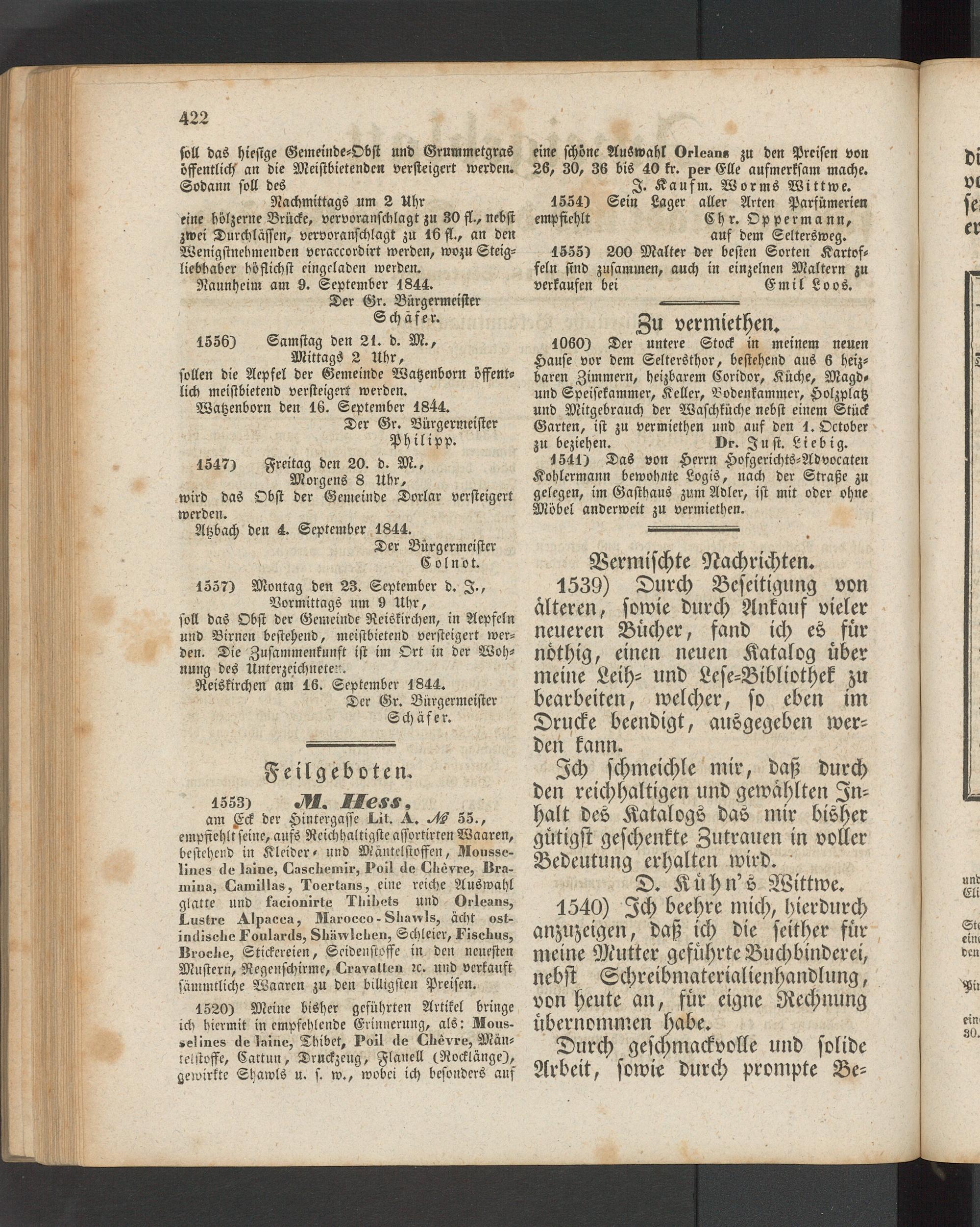 Anzeigeblatt für die Provinzialhauptstadt Gießen. 1840-1867