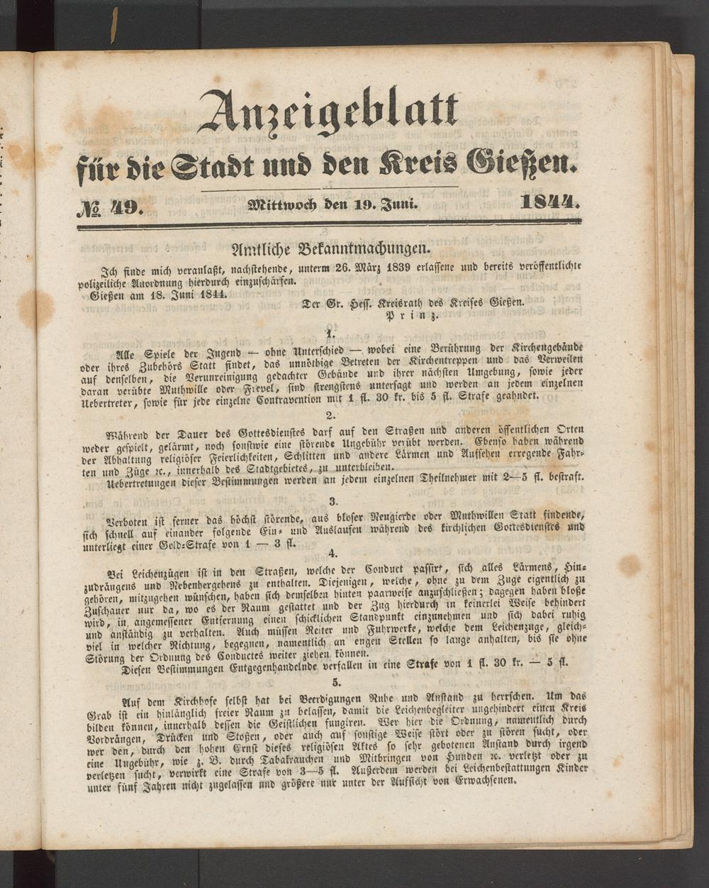 Anzeigeblatt für die Provinzialhauptstadt Gießen. 1840-1867