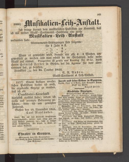 Anzeigeblatt für die Provinzialhauptstadt Gießen. 1840-1867