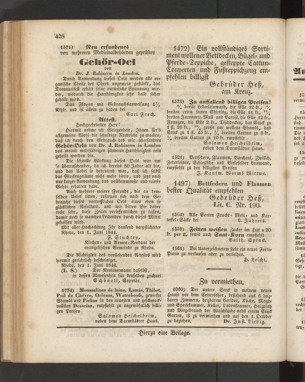 Anzeigeblatt für die Provinzialhauptstadt Gießen. 1840-1867