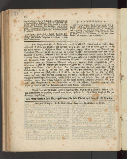 Anzeigeblatt für die Provinzialhauptstadt Gießen. 1840-1867