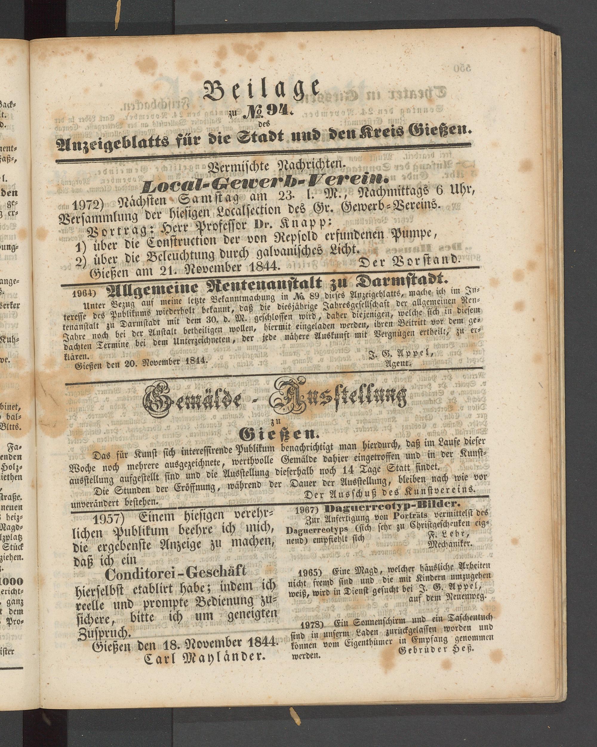Anzeigeblatt für die Provinzialhauptstadt Gießen. 1840-1867