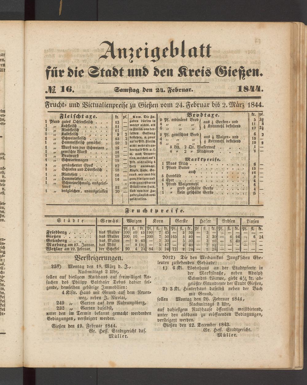 Anzeigeblatt für die Provinzialhauptstadt Gießen. 1840-1867