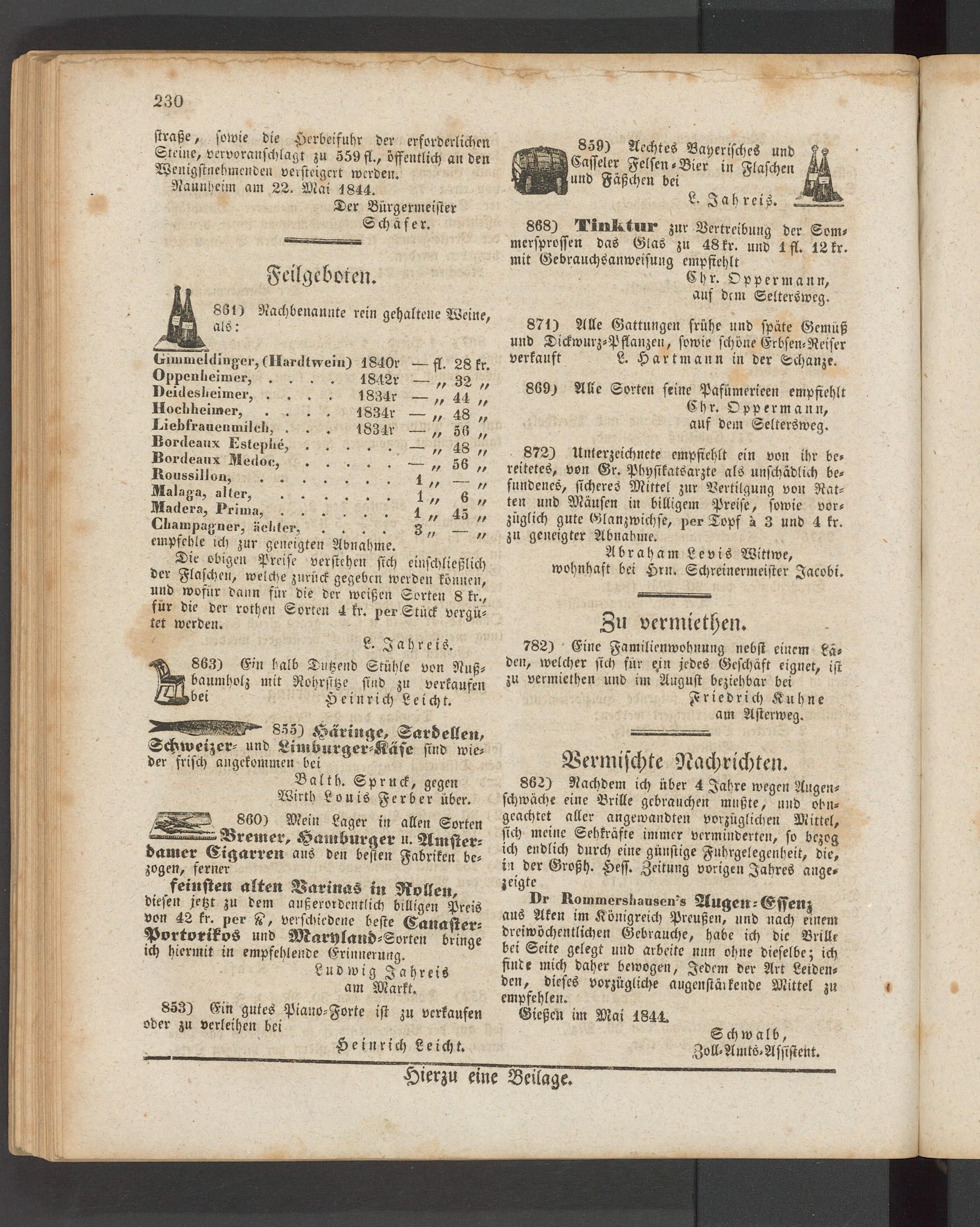 Anzeigeblatt für die Provinzialhauptstadt Gießen. 1840-1867