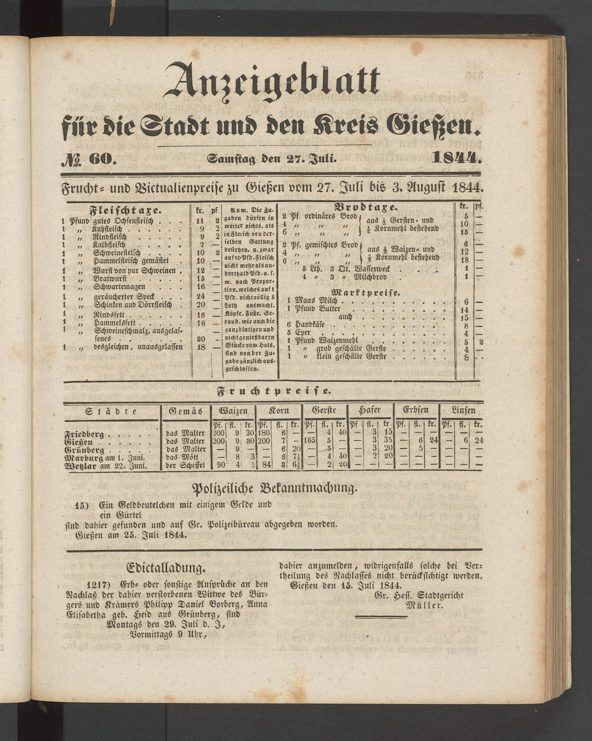 Anzeigeblatt für die Provinzialhauptstadt Gießen. 1840-1867