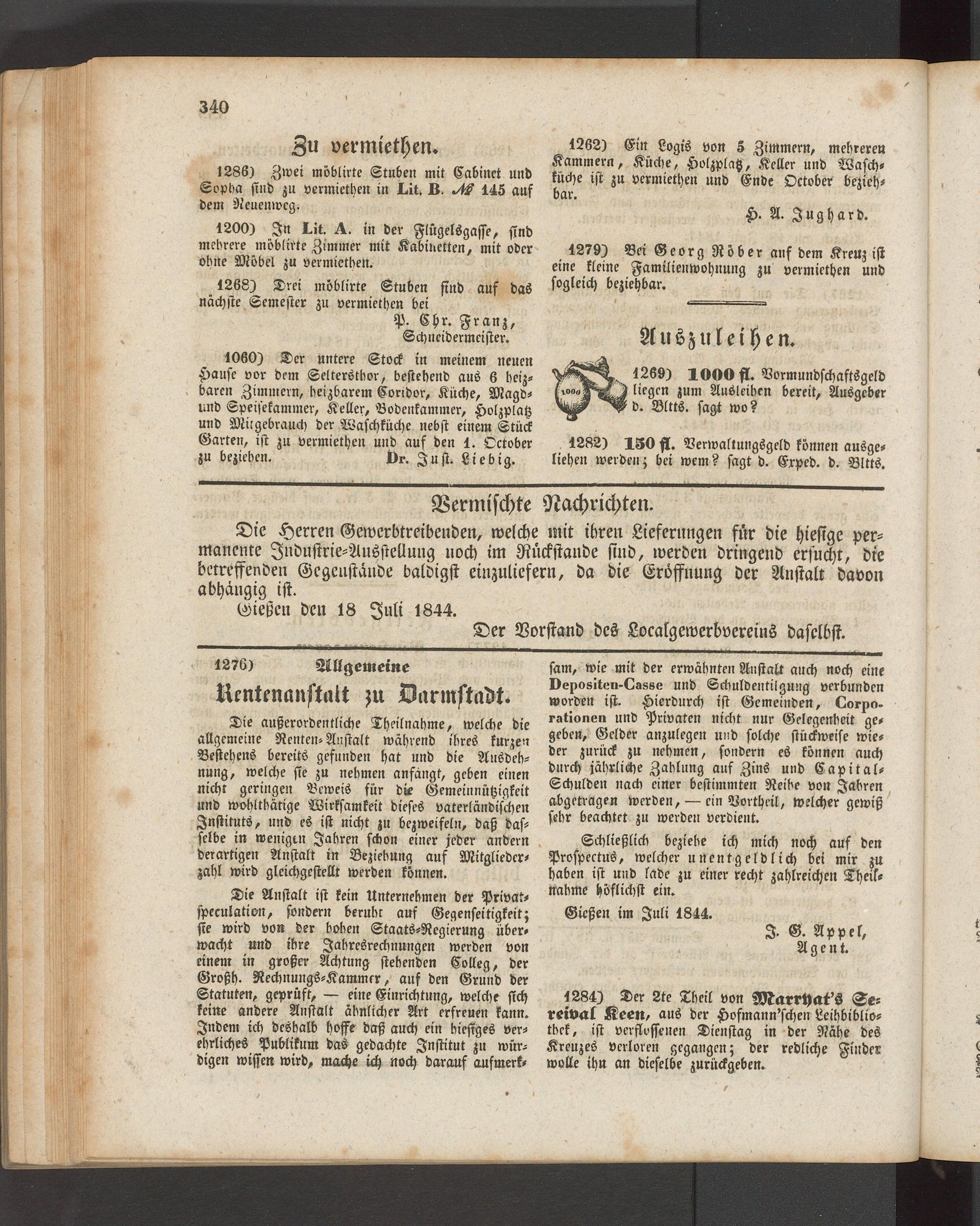 Anzeigeblatt für die Provinzialhauptstadt Gießen. 1840-1867