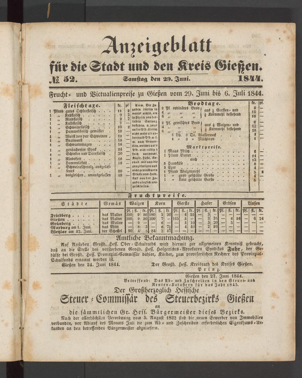 Anzeigeblatt für die Provinzialhauptstadt Gießen. 1840-1867
