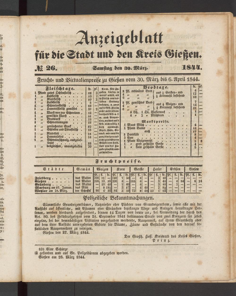 Anzeigeblatt für die Provinzialhauptstadt Gießen. 1840-1867