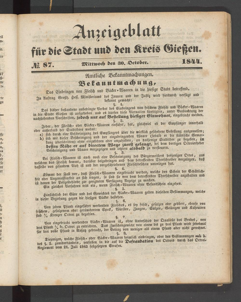 Anzeigeblatt für die Provinzialhauptstadt Gießen. 1840-1867