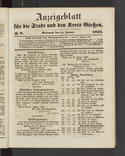 Anzeigeblatt für die Provinzialhauptstadt Gießen. 1840-1867