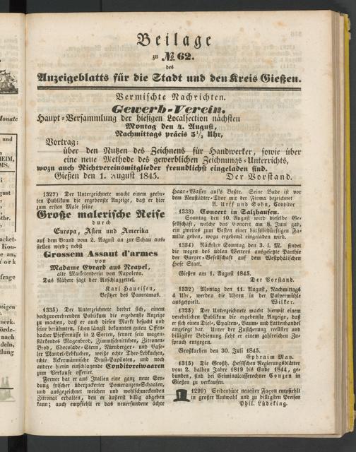 Anzeigeblatt für die Provinzialhauptstadt Gießen. 1840-1867