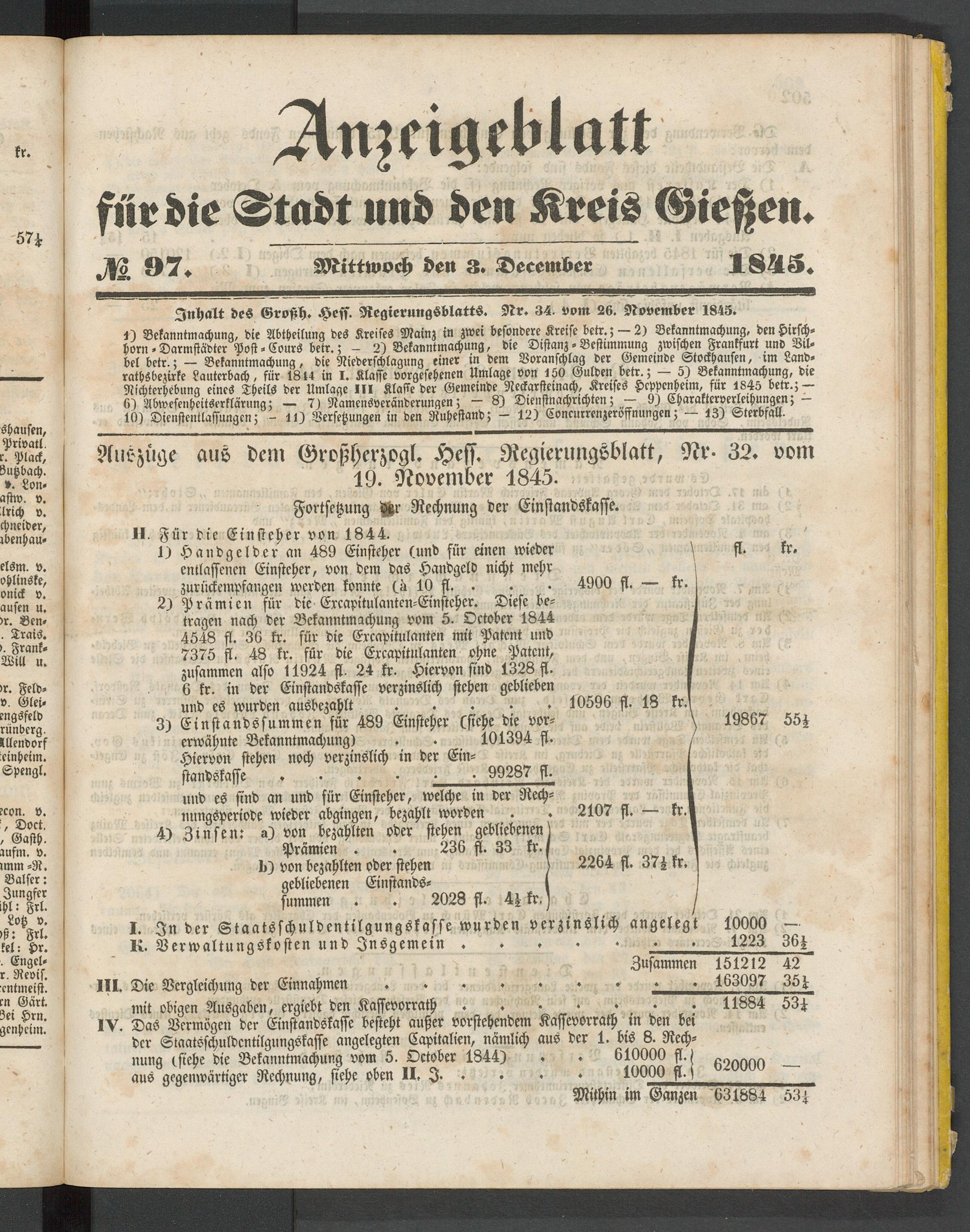 Anzeigeblatt für die Provinzialhauptstadt Gießen. 1840-1867