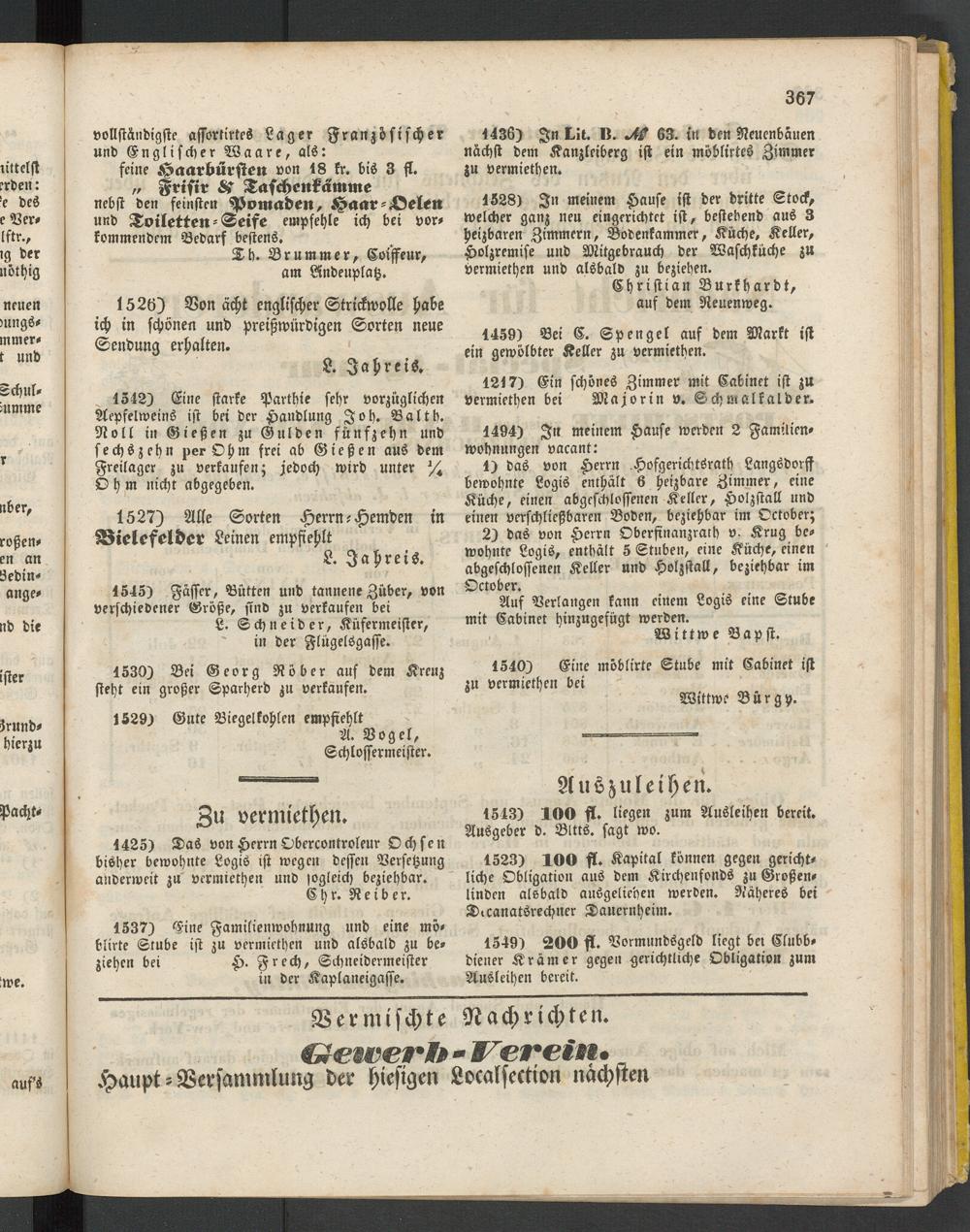 Anzeigeblatt für die Provinzialhauptstadt Gießen. 1840-1867