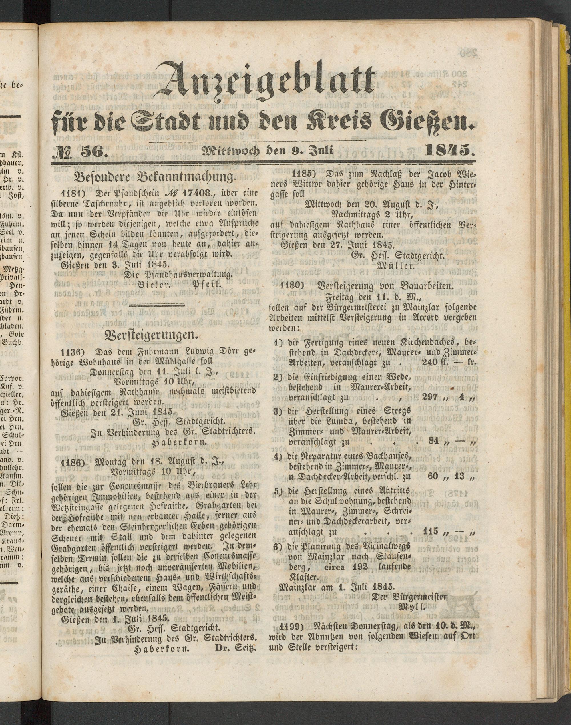 Anzeigeblatt für die Provinzialhauptstadt Gießen. 1840-1867