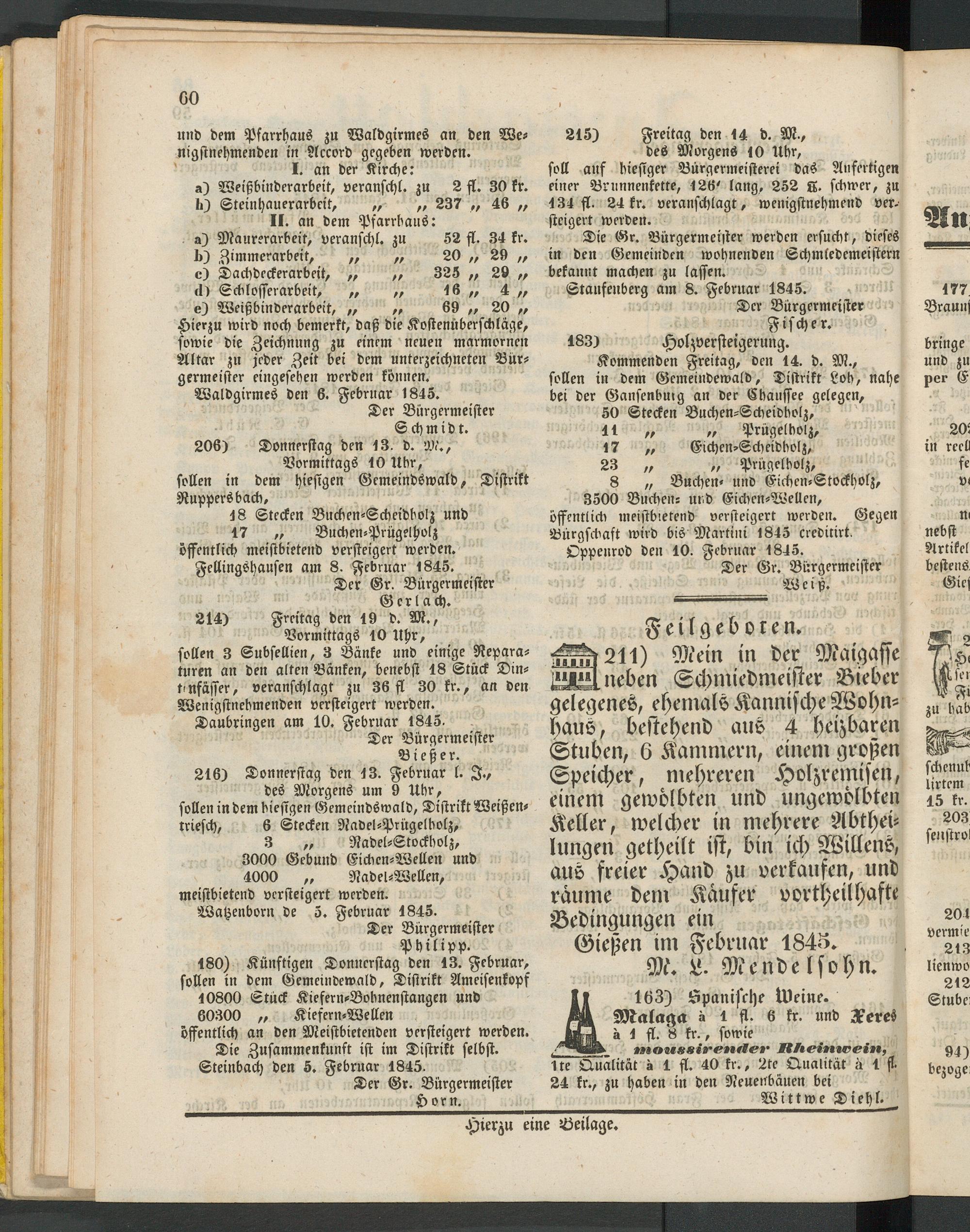 Anzeigeblatt für die Provinzialhauptstadt Gießen. 1840-1867