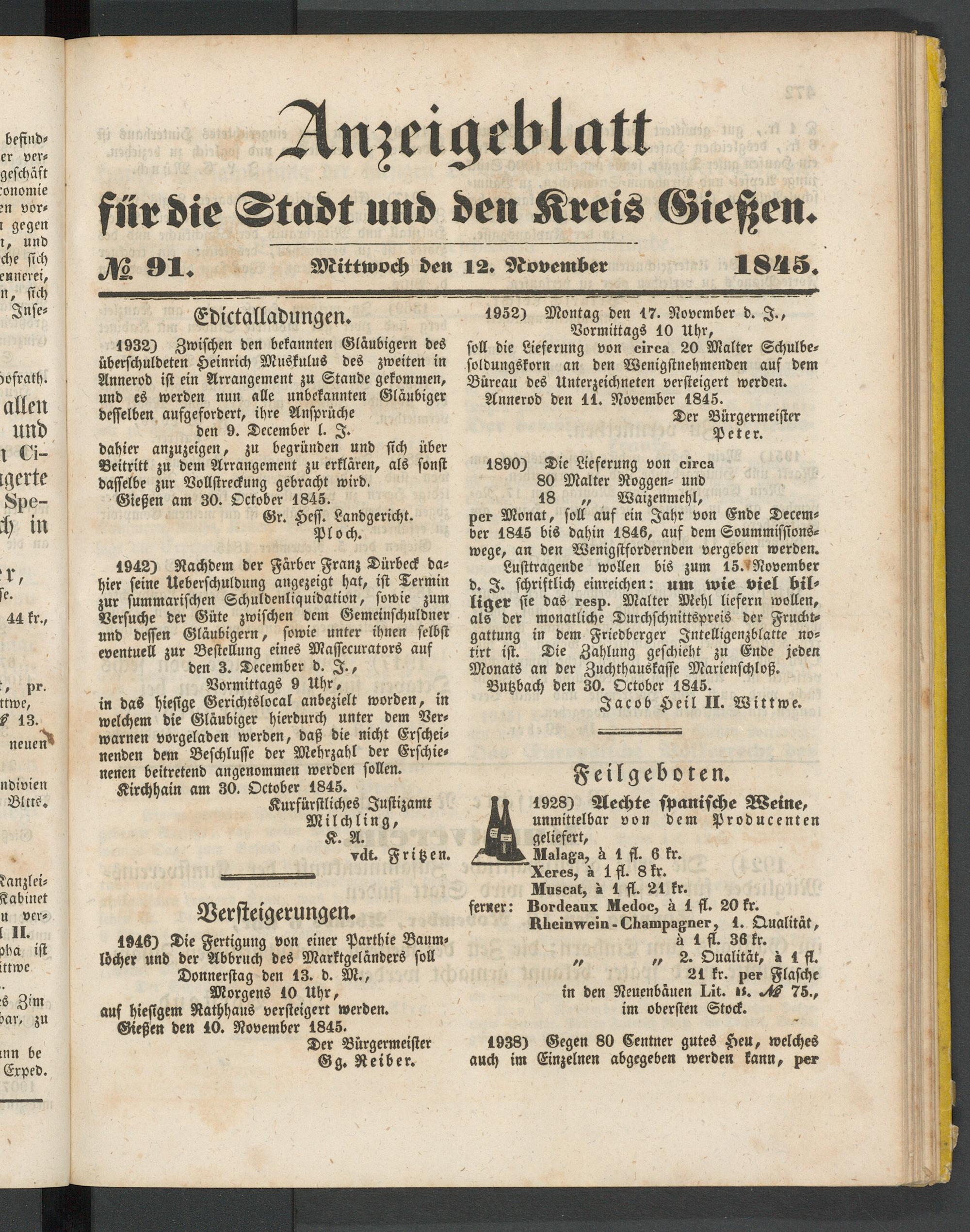 Anzeigeblatt für die Provinzialhauptstadt Gießen. 1840-1867