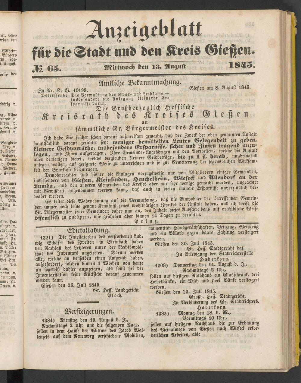 Anzeigeblatt für die Provinzialhauptstadt Gießen. 1840-1867