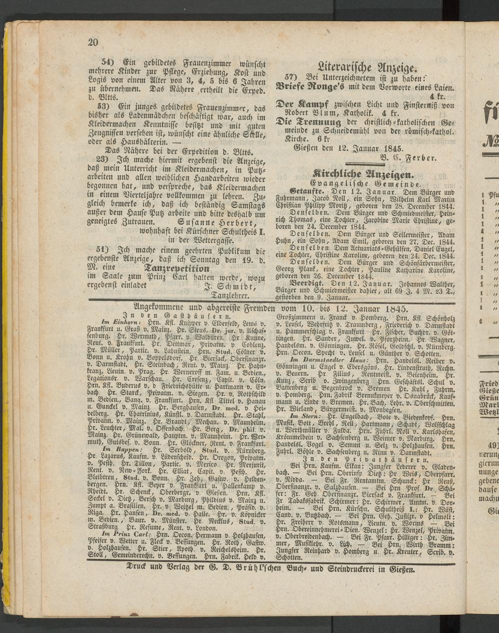 Anzeigeblatt für die Provinzialhauptstadt Gießen. 1840-1867
